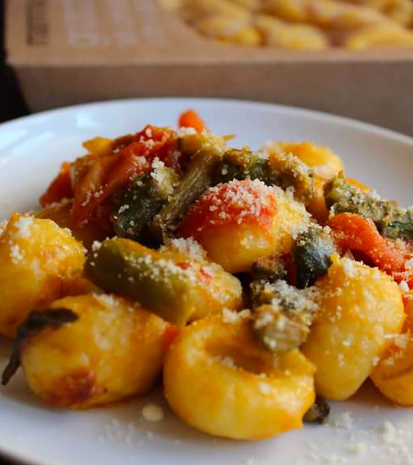 Gnocchi di zucca con asparagi e pomodorini