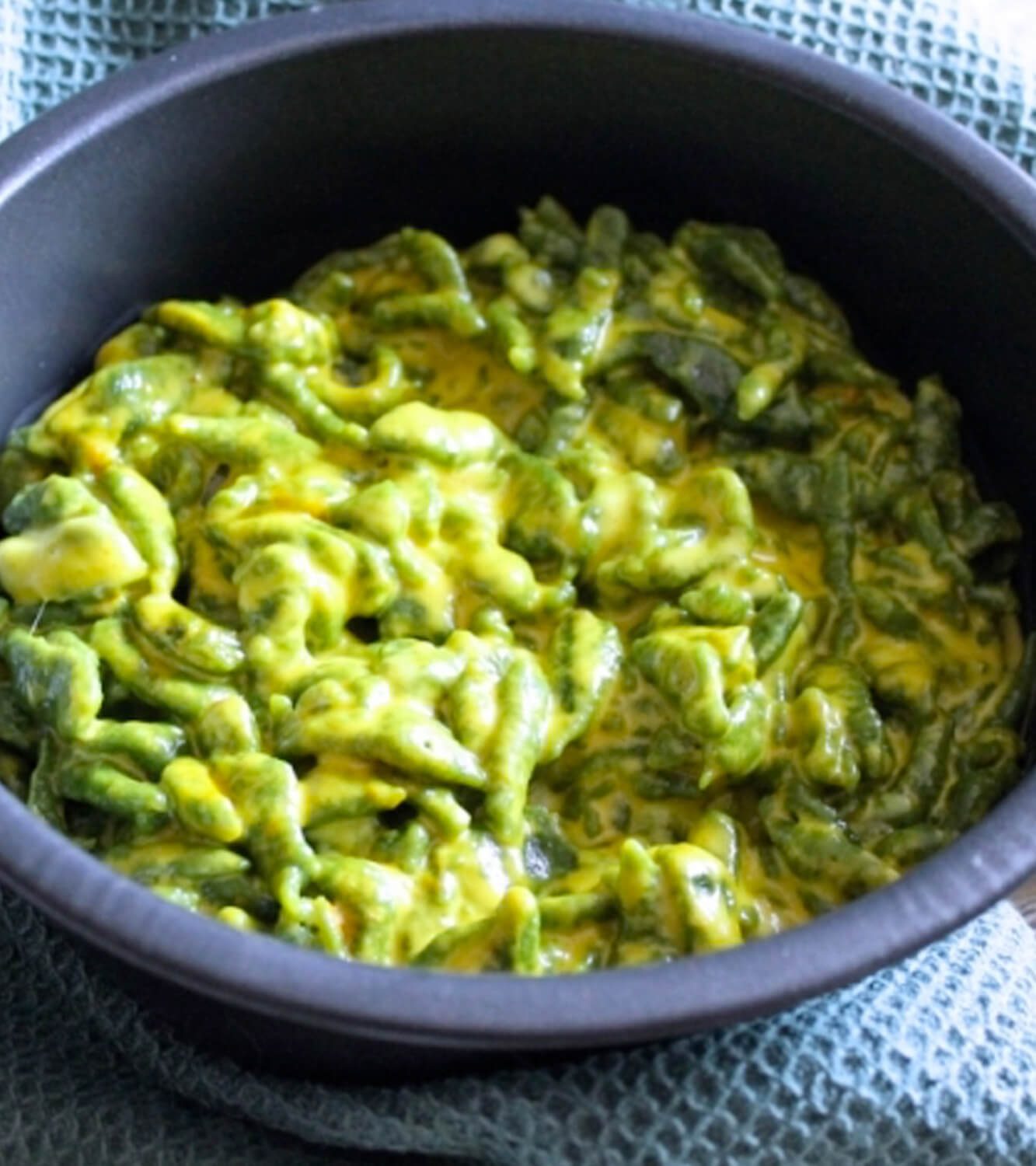 Spätzle curcuma e fonduta di formaggi di malga