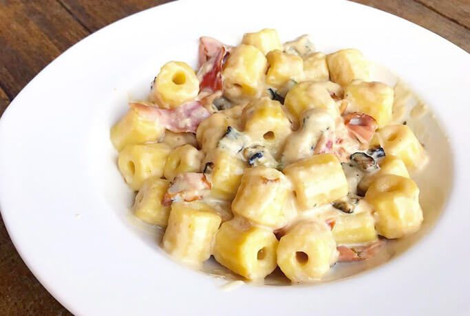 <p style="text-align: center">Finally, make a bed of pesto, decorate the edges with pearls of balsamic vinegar and pour gnocchi and bacon in the middle. A real treat for the eyes and palate.</p>