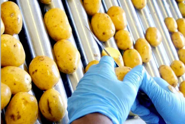 Lavoriamo ogni giorno 15.000 Kg di patate fresche che in seguito: laviamo, selezioniamo, cuociamo a vapore con la buccia per mantenere intatte le proprietà organolettiche, sbucciamo e spremiamo una ad una