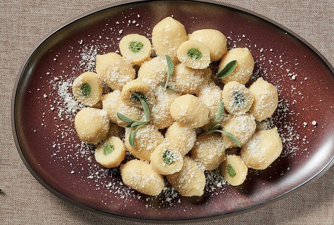A questo punto versate la crema di radicchio e ricotta in un tegame, aggiungete 100ml di acqua e una volta in temperatura, aggiungete una confezione di gnocchi di patate mamma emma. 3 minuti dopo i vostri gnocchi saranno già pronti. Decorate con delle scaglie di mandorle tostate e servite.