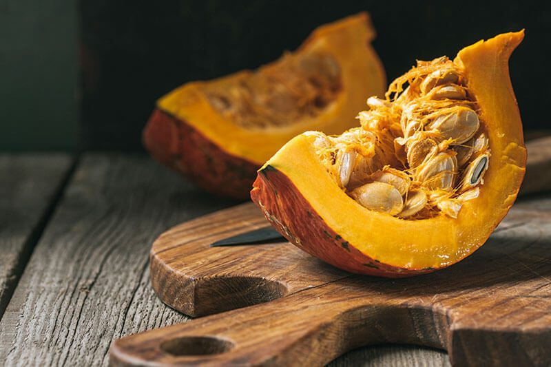 • Per prima cosa lavate e tagliate la zucca a cubetti. Fate rosolare uno spicchio d’aglio con un filo di olio extravergine d’oliva in una padella antiaderente. Aggiungete i cubetti di zucca e un paio di mestoli di acqua. Se l’acqua non dovesse bastare, aggiungetene ancora durante la cottura.