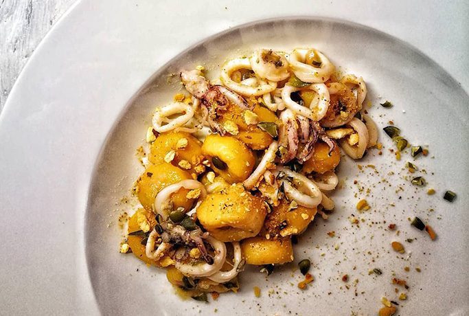 - Aggiungiamo gli gnocchi di patate con zucca mamma emma e spadelliamo per 3 minuti. Vedrete come in poco tempo si mantecheranno e tutto si legherà da sé senza l’aggiunta di burro o olio.