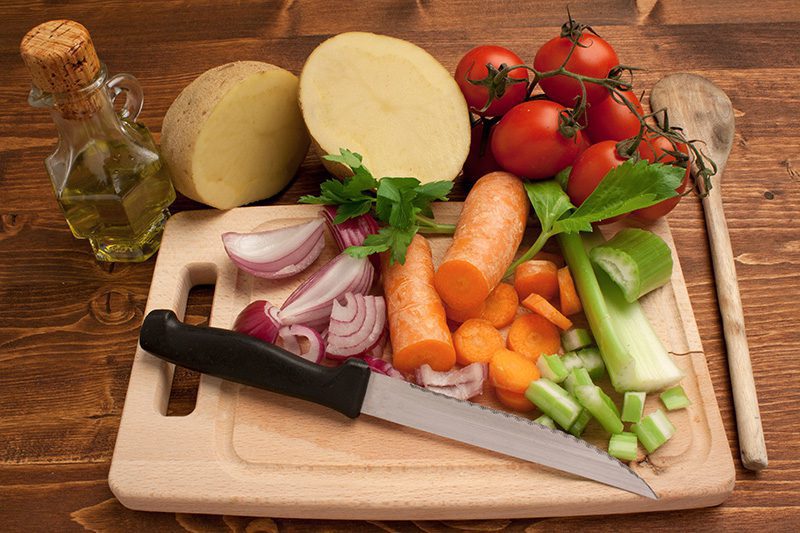 Tagliate il sedano, la carota e lo scalogno a fettine e poi tritateli in dadolata finissima. Lavate i pomodorini e tagliateli in 4 spicchi. Tagliate a cubetti il bacon e grattugiate la ricotta. Soffriggete con poco olio extravergine d’oliva la pancetta, aggiungete le verdure tritate, mescolate e poi unite i pomodorini, salate e pepate. In una pentola versate un mestolo d’acqua calda e gli spätzle di spinaci.