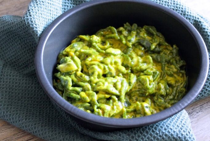 Spätzle di spinaci con dadolata di verdure e ricotta affumicata